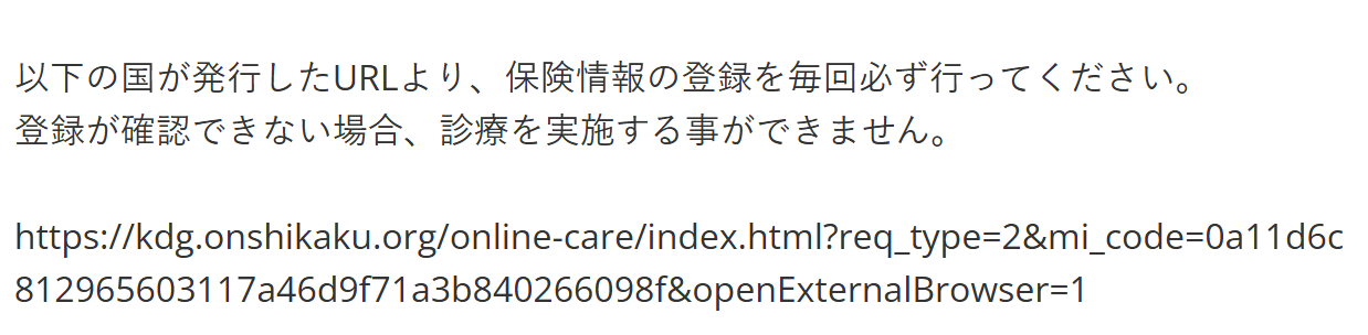 【重要】予約完了メールに届いている案内に従って、保険情報の登録をお願いします。