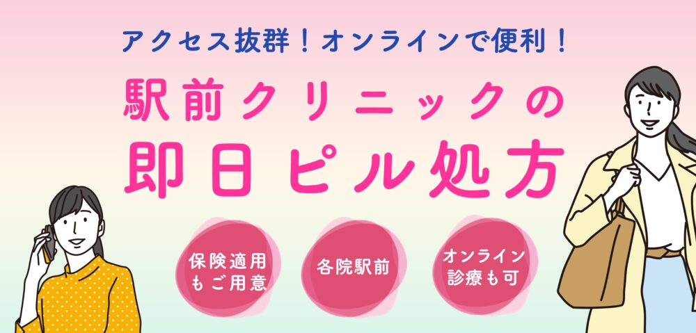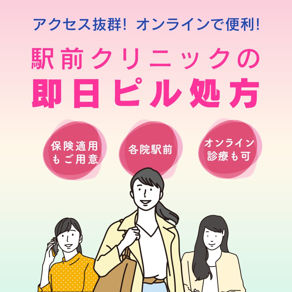 渋谷院・五反田院・中野院は駅から徒歩1分、福岡天神院も徒歩3分という立地で、通勤やお買い物のついでなど、用事に合わせた即日のピル処方が可能です。オンラインでの処方も行っております。